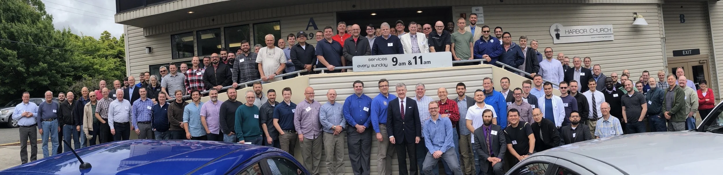 Our preaching conference group meets outside during a break. Can you fine our guys in the picture?